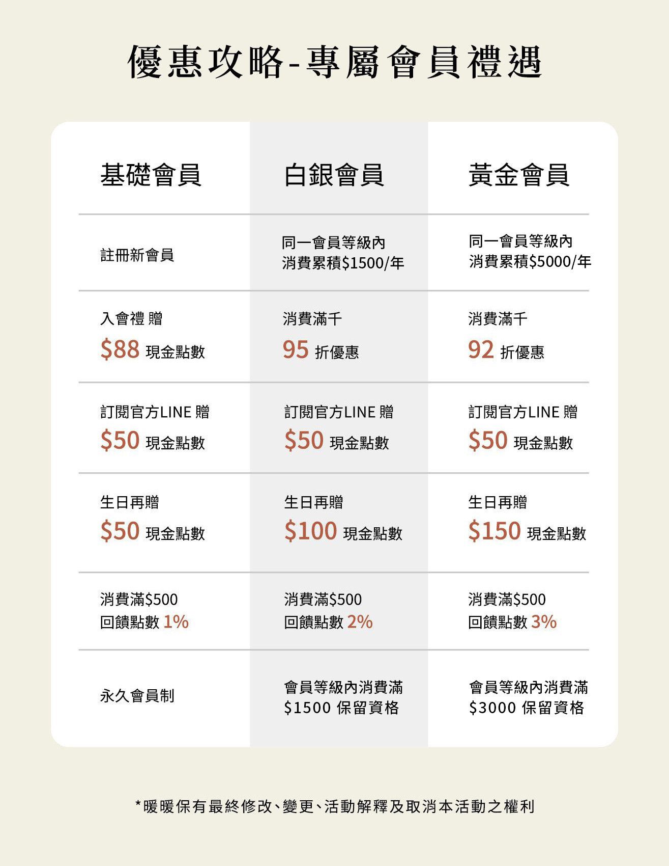 2. 同會員等級內,累積消費滿5,000/年即可升等黃金會員