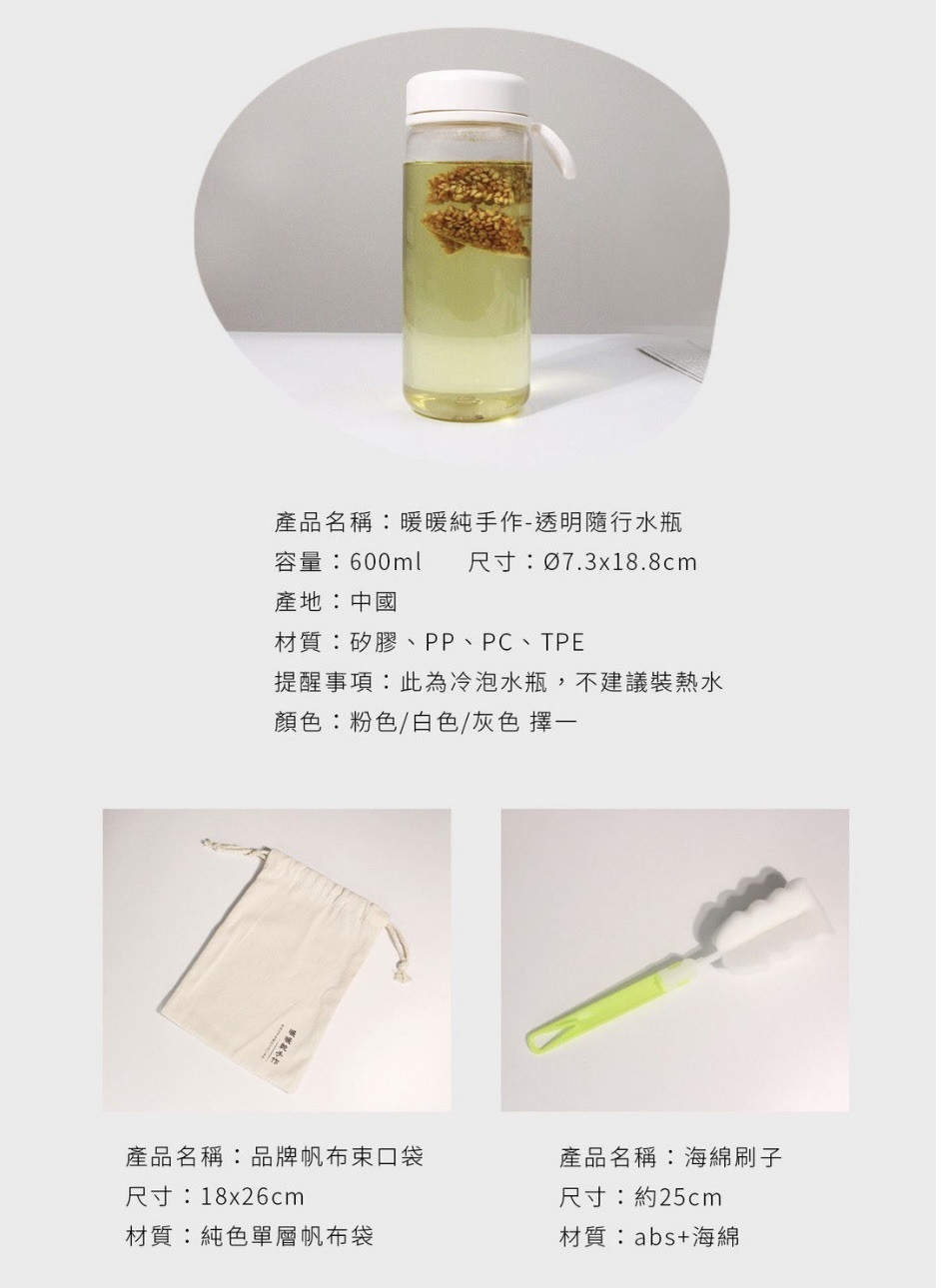 • 白色-透明隨行水瓶 600ML