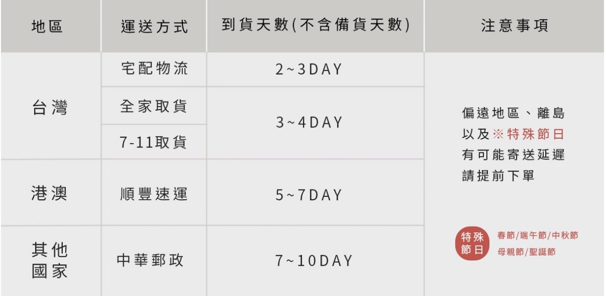 商品備貨 & 到貨天數