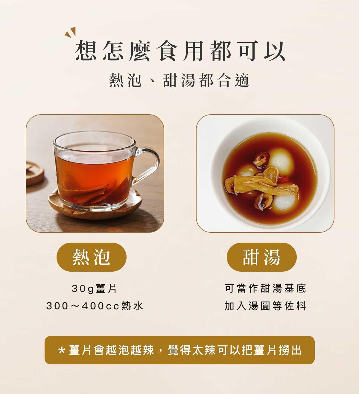 無論是熱泡、甜湯或日常飲用,都能輕鬆享受薑茶的溫潤風味。