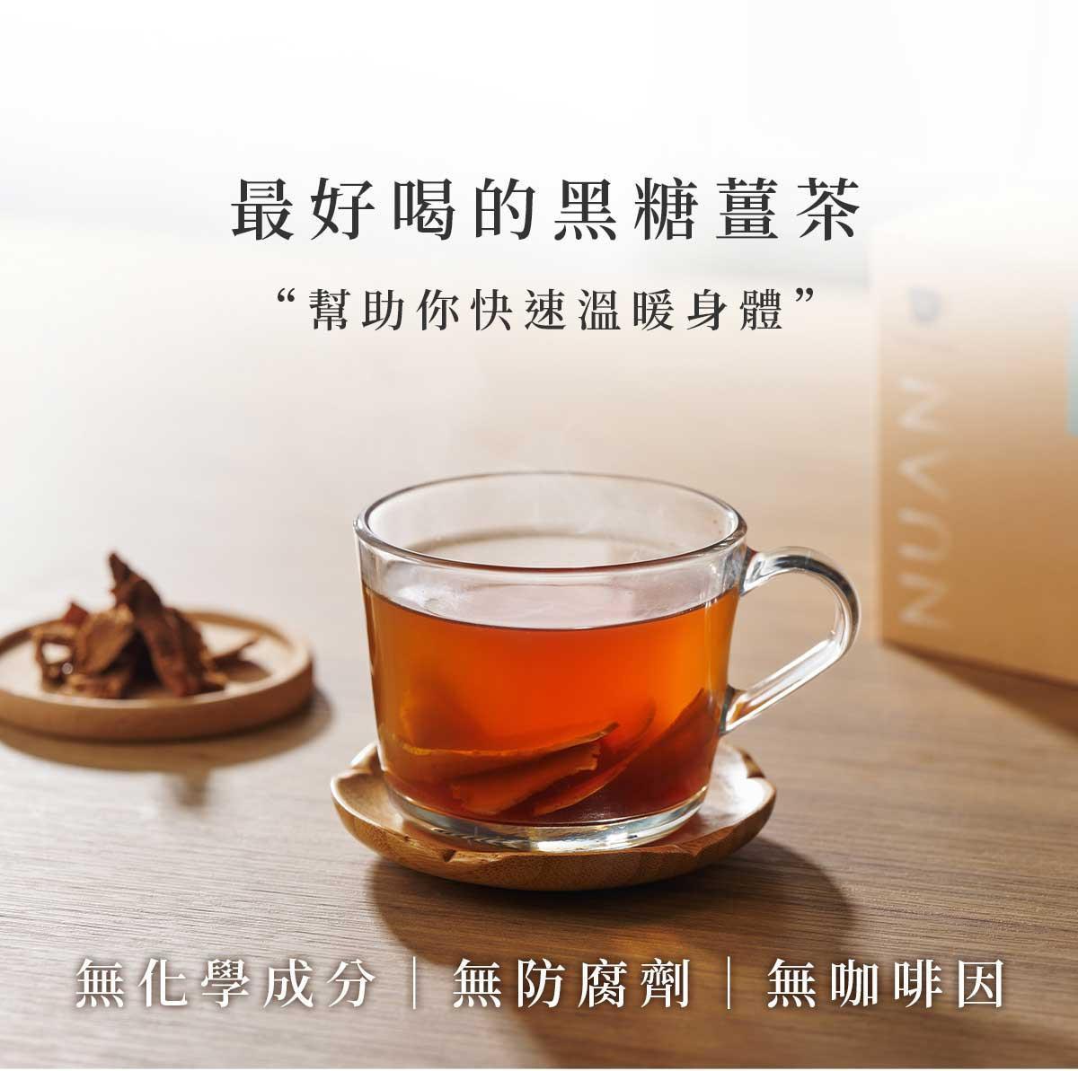 暖暖純手作黑糖原片薑茶保留薑片天然香氣,搭配溫潤黑糖甜味,喝起來不會過於甜膩。