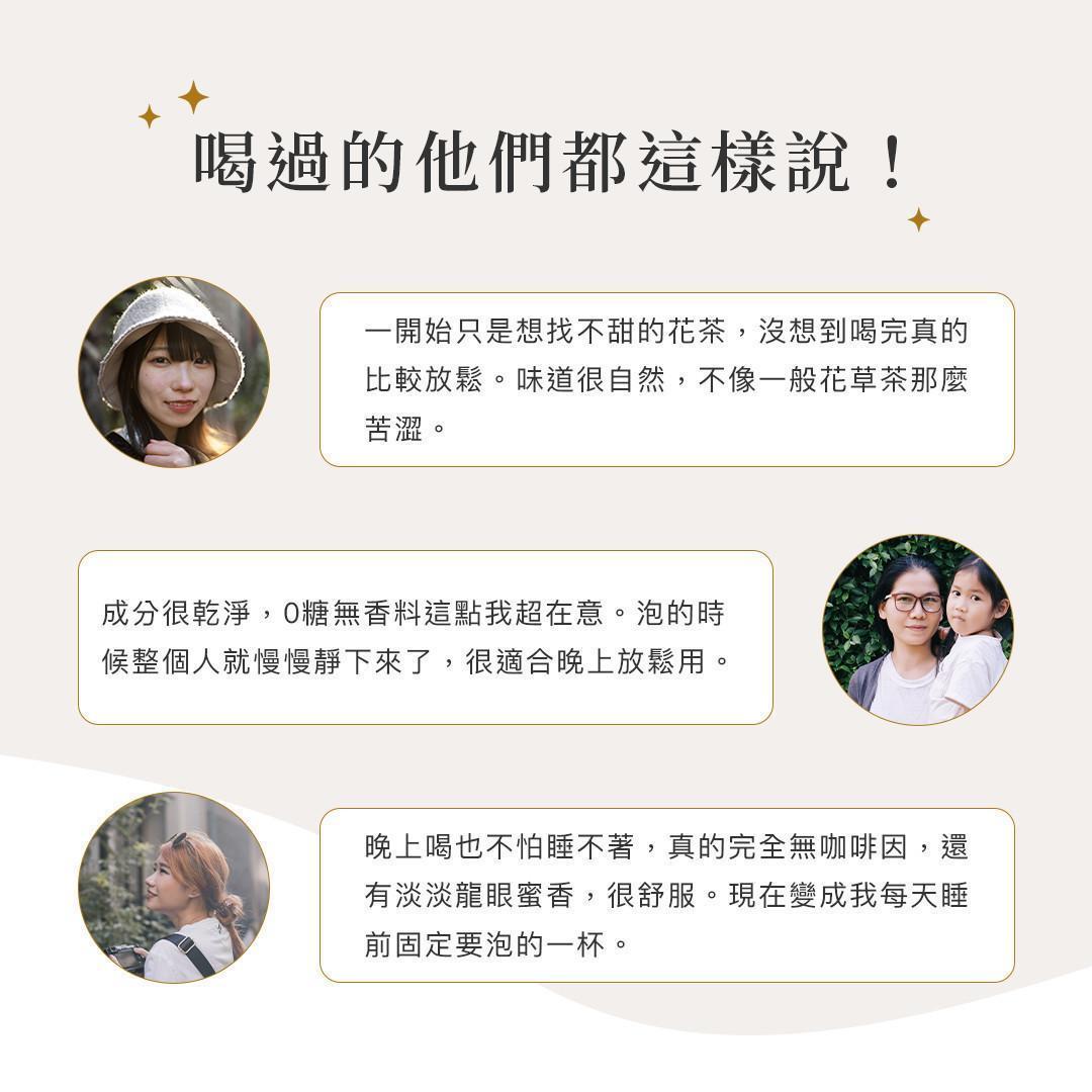 不需要繁複準備,也不用額外煮茶。只要將茶包放入杯中,加入熱水靜置 3–5 分鐘,龍眼花的溫潤香氣便會慢慢釋放。這段等待的時間,就像為自己按下暫停鍵,讓睡前不再匆忙。每天重複同一個簡單步驟,替生活建立一個能安心放鬆的節奏。