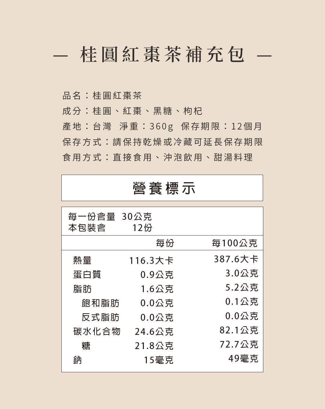 【裸食補充包】桂圓紅棗茶 360g