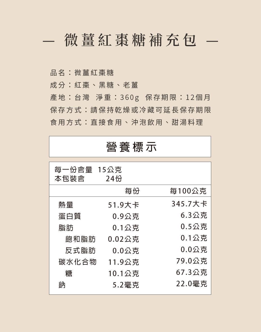 【裸食補充包】微薑紅棗糖 360g