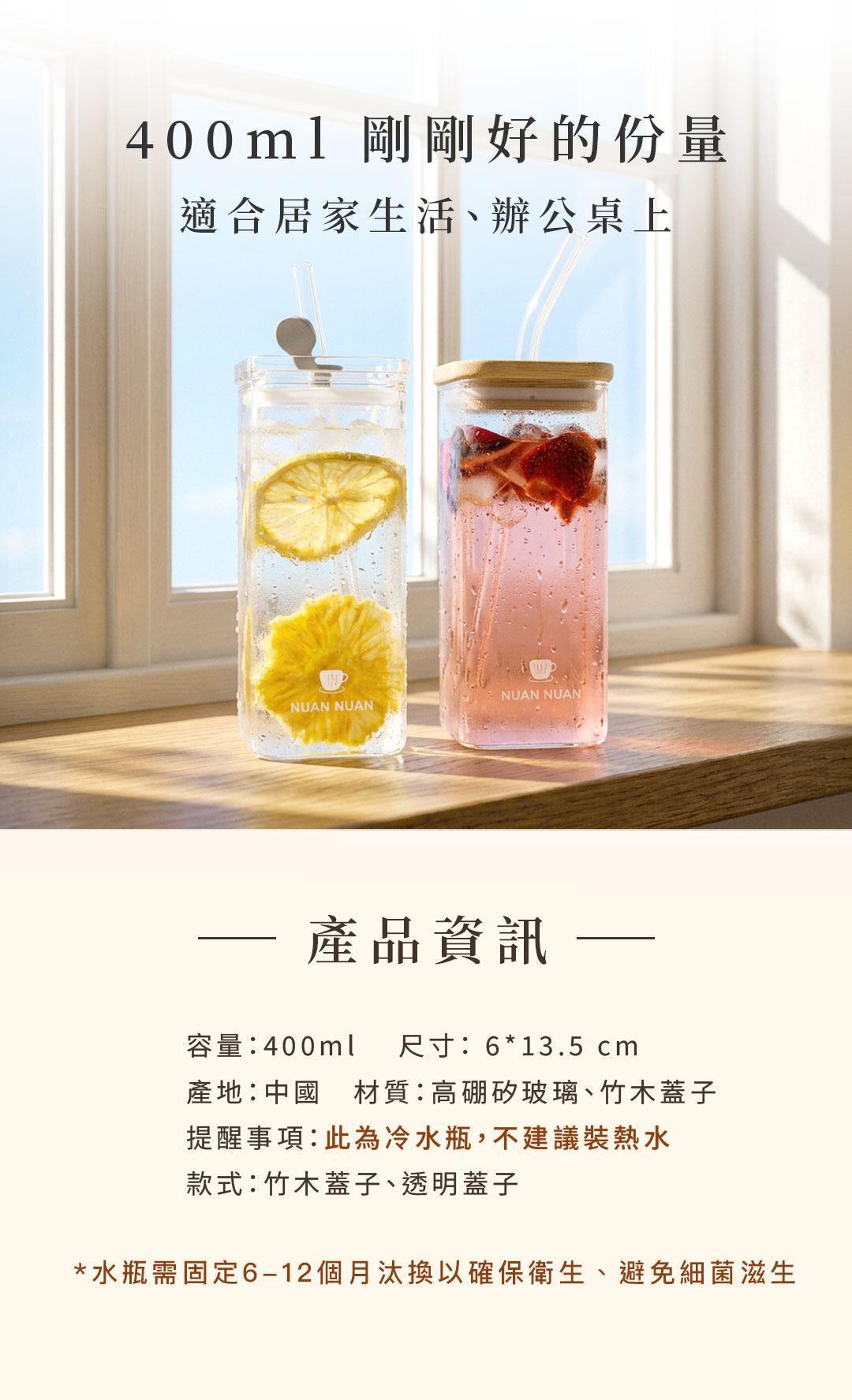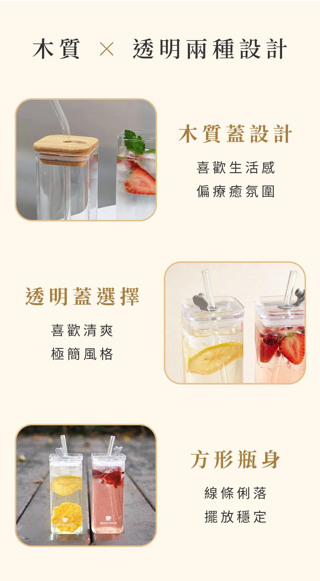 方形玻璃吸管水杯 400ML,暖暖NUANNUAN - 喝的保養品