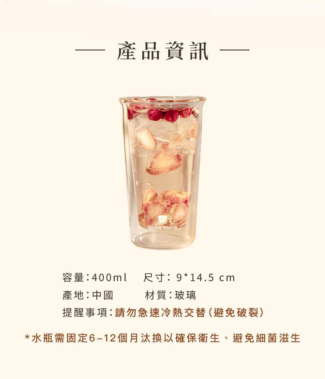 雙層玻璃水杯 400ML,暖暖NUANNUAN - 喝的保養品